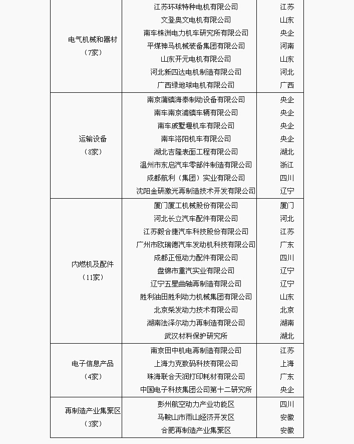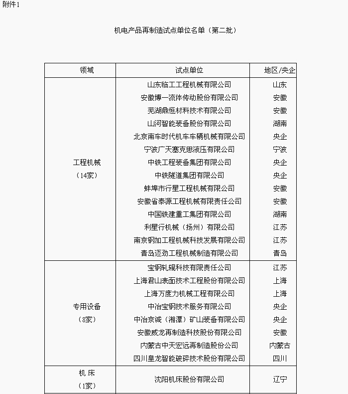 附件:1.机电产品再制造试点单位名单(第二批)