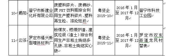 关于公布2015年广东省资源综合利用企业认定名单的通知