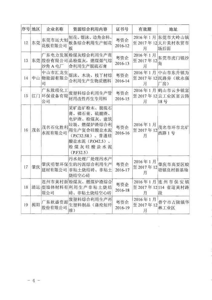 附件:2016年第一批广东省资源综合利用企业认定名单