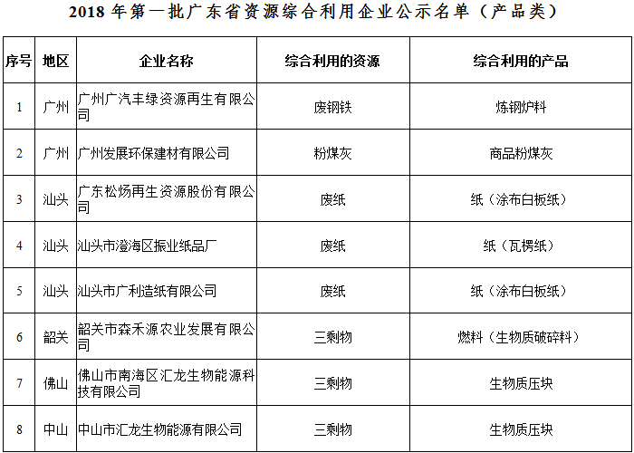 附件:1、2018年第一批广东省资源综合利用企业公示名单(产品类)
