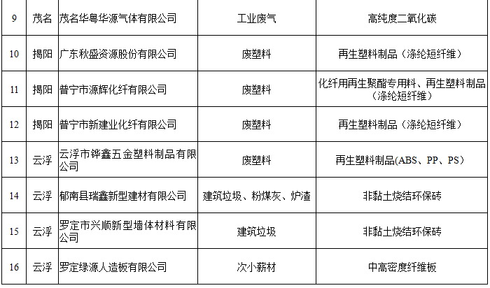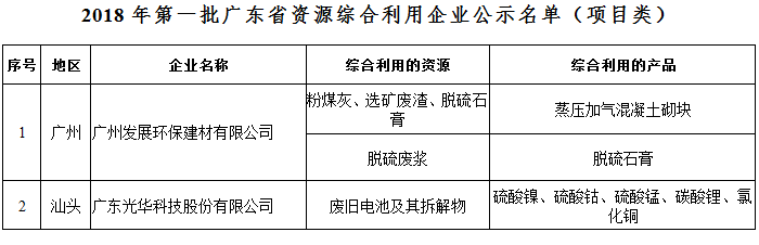 2、2018年第一批广东省资源综合利用企业公示名单(项目类)