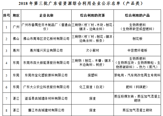 附件:1、2018年第三批广东省资源综合利用企业公示名单(产品类)