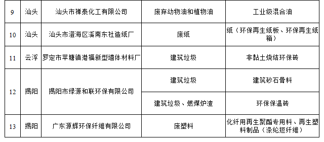 2、2018年第三批广东省资源综合利用企业公示名单(项目类)