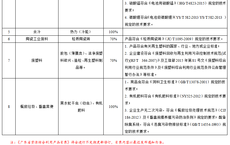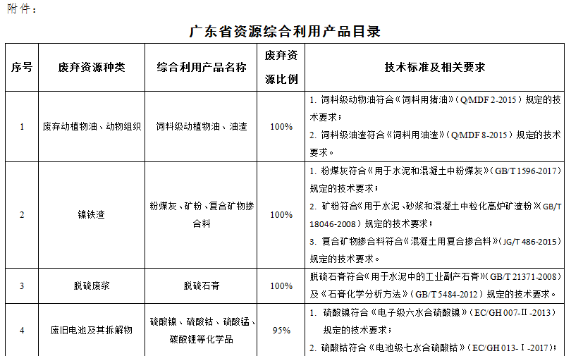 附件:《广东省资源综合利用产品目录》