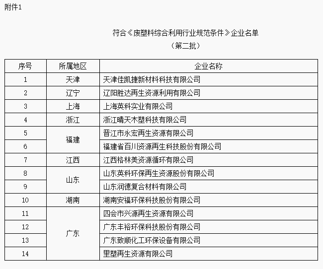 1. 符合《废塑料综合利用行业规范条件》企业名单(第二批)