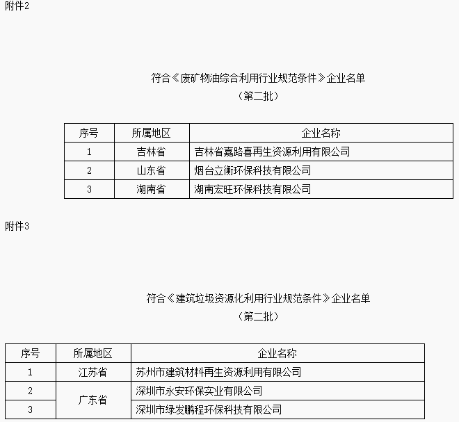 符合废塑料、废矿物油、建筑垃圾、废旧轮胎综合利用行业规范条件企业名单公示