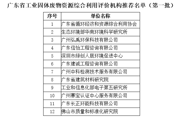 附件:广东省工业固体废物资源综合利用评价机构推荐名单(第一批)