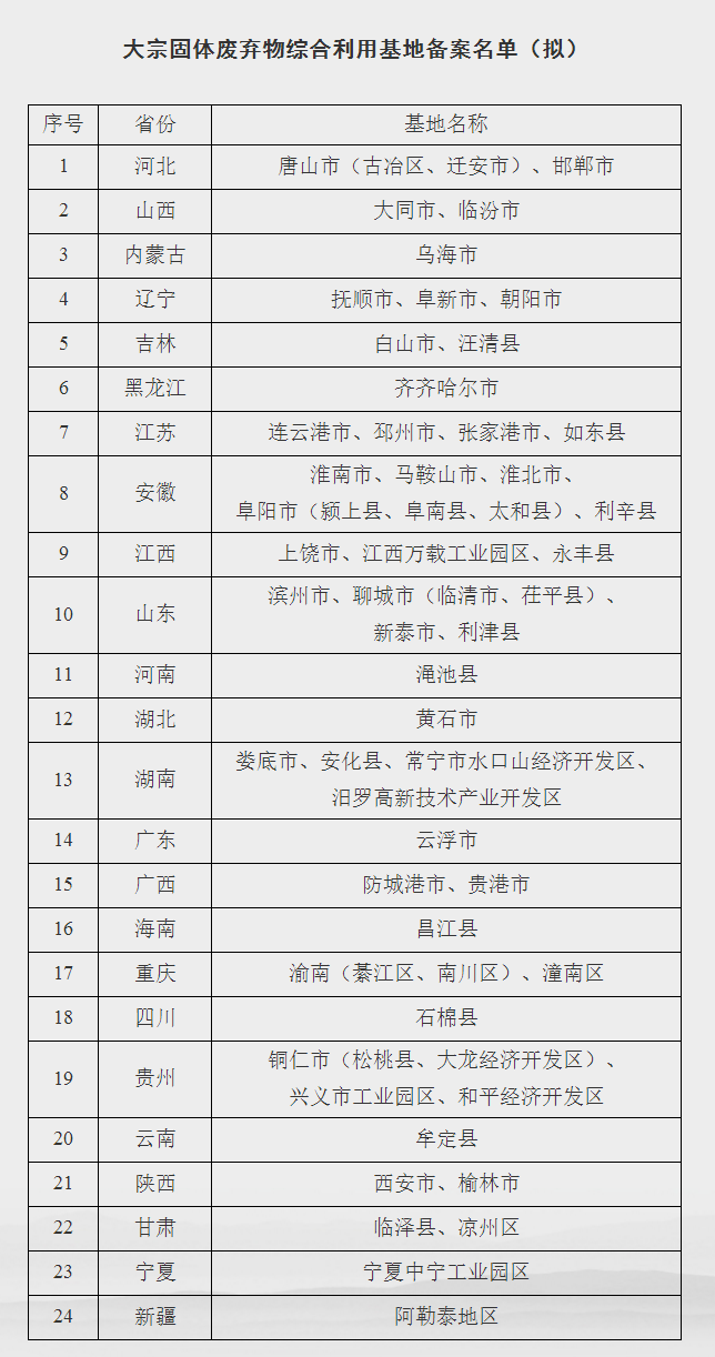 关于大宗固体废弃物综合利用基地备案名单的公示