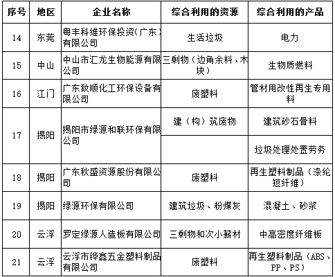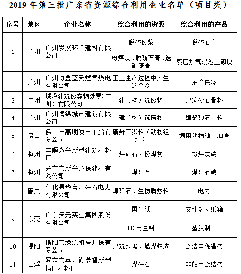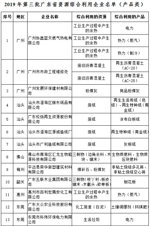 1、2019年第三批广东省资源综合利用企业名单(产品类)