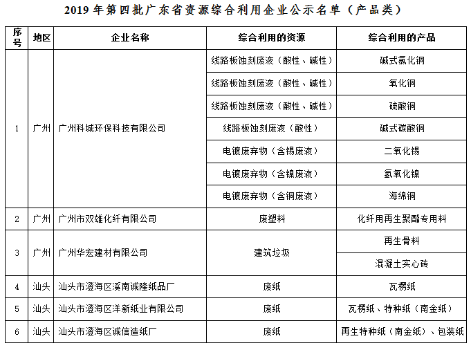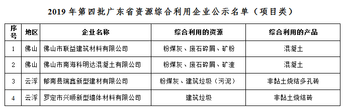附件:1、2019年第四批广东省资源综合利用企业公示名单(产品类)