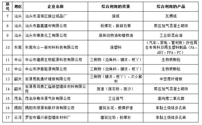 2、2019年第四批广东省资源综合利用企业公示名单(项目类)