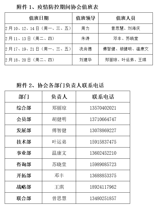 附件:1、疫情防控期间协会值班表