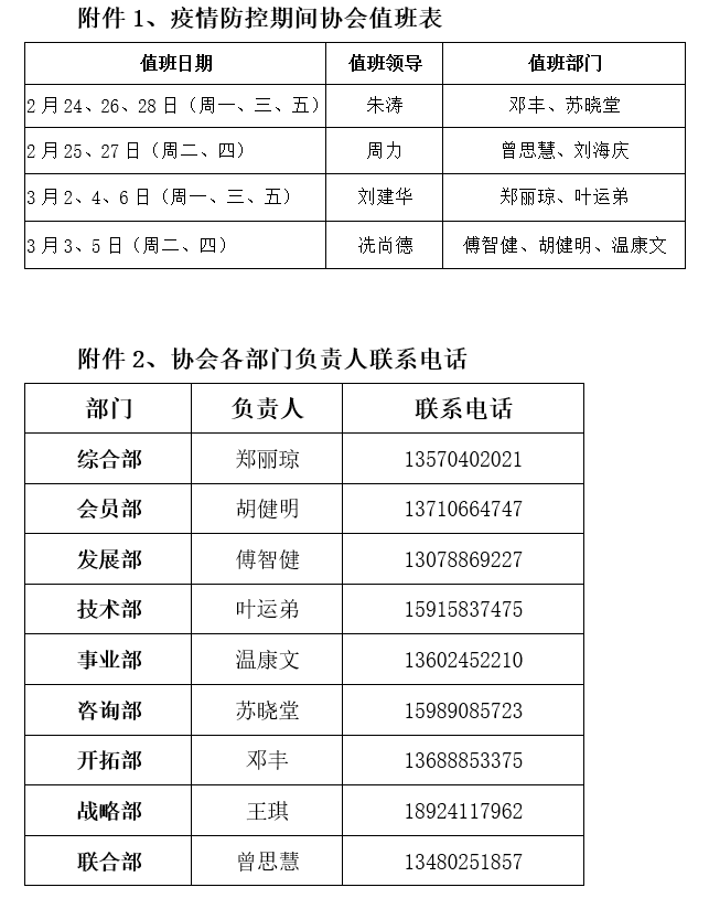 附件:1、疫情防控期间协会值班表