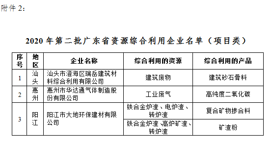 关于公布2020年第二批广东省资源综合利用企业名单的通知