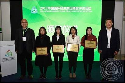 图9 我协会荣获2017中国循环经济“摩比斯奖”最佳组织奖