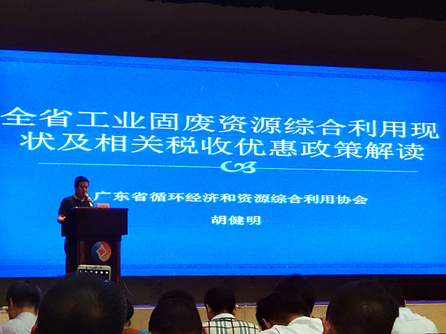 8月9日,广东省环境保护厅在广州市举办了“送技术服务进企业”固体废物处理处置专题宣讲会,以贯彻落实 《广东省环境保护厅关于印发固体废物污染防治三年行动计划(2018-2020年)的通知》(粤环发〔2018〕5号)的有关要求,加大我省固体废物处理处置减量化、资源化和无害化力度,指导和帮助企业进一步提升固体废物处理处置技术水平。我协会会员部胡健明副主任受邀作为宣讲专家出席此次专题宣讲会,并就全省工业固废资源综合利用现状及相关税收优惠政策的相关内容,与来自全省各地级以上市环保部门及相关负责人参加会议共400多人进行了解读分享。