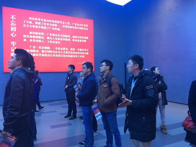 “大潮起珠江——广东改革开放40周年展览”坚持以习近平新时代中国特色社会主义思想为指导,突出展示改革开放40年来,特别是党的十八大以来,广东改革开放再出发,勇当排头兵、先行地、实验区,奋力实现“四个走在全国前列”,当好“两个重要窗口”的新作为新担当。展览以历史图片、文字视频、实物场景、互动体验等多种手段和元素,全面、生动和立体地展示了广东改革开放40年的峥嵘岁月,充分展示了人民群众生产生活发生的伟大变迁,中华民族迎来了从站起来、富起来到强起来的伟大飞跃。