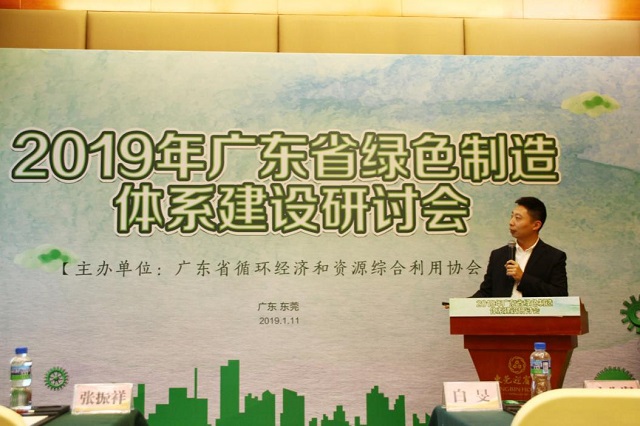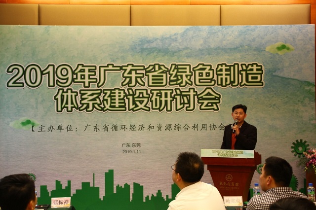2019年1月11日,广东省绿色制造体系建设研讨会在东莞迎宾馆圆满举办。本次会议由广东省循环经济和资源综合利用协会主办,邀请了省工业和信息化厅工业节能与综合利用处张振祥处长、工业和信息化部国际经济技术合作中心白旻副研究员及分管绿色制造和清洁生产工作相关领导,出席本次会议的还有科研院校、工业园区、企业及有关行业协会代表等共约150人,会议由广州大学李笛副教授主持。