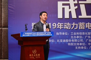 图6 联盟第一届理事会理事长单位代表比亚迪电池事业群第二事业部NPS工厂厂长吕明海作联盟2019年工作计划