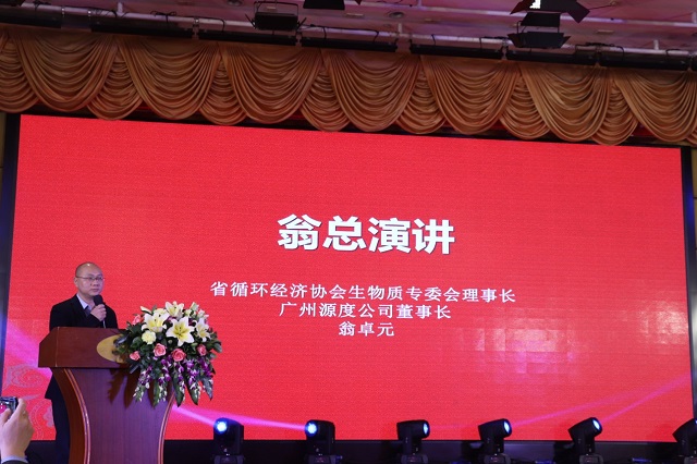 随后,专委会理事长、源度公司总经理翁卓元介绍源度公司过去几年在生物质领域中取得的成绩,以及公司的未来发展方向。并代表广州市源度再生资源有限公司与深圳市众投邦股份有限公司进行签约。