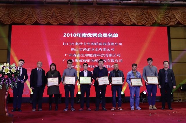 会议最后,专委会向江门奥仕卡生物质能源有限公司等7家企业颁发“2018年度优秀会员单位”牌匾,向广州市源度再生资源有限公司等5家企业颁发“2018年度突出贡献奖”牌匾。