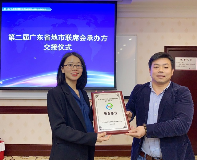 最后,经成员单位提出,广东协会秘书处研究决定,第二届联席会的承办方为肇庆市经济发展促进会。现场进行了承办单位的交接仪式。