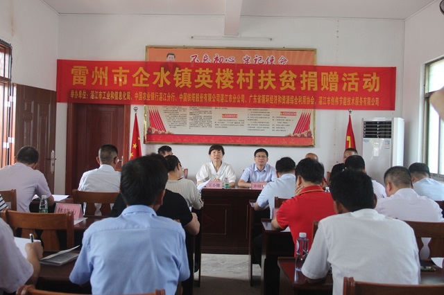 活动首先召开调研会,听取英楼村和企水镇负责人汇报扶贫工作的成效、存在问题,共同探讨今后工作重点及工业措施等。企水镇英楼村是湛江市工业和信息化局与农行湛江分行的联合扶贫点,结合英楼村的特点,通过地方政府与社会各界的支持,到目前为止,该村已建成黄牛养殖场一个,存栏规模达80多头,完成村道主干线路灯建设和村农贸市场建设,改造了村小学老师宿舍等,村容、村貌和农户生活有了进一步的改善。