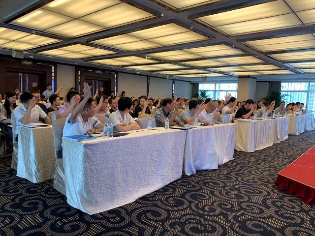 最后,与会监事、理事会成员代表对议程报告及修订说明进行表决,并全部审议通过。