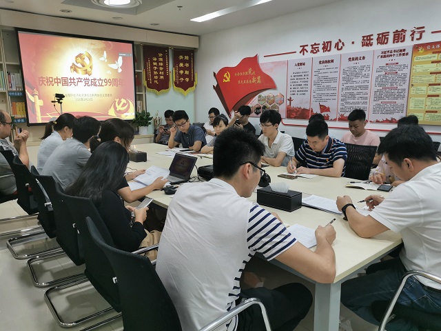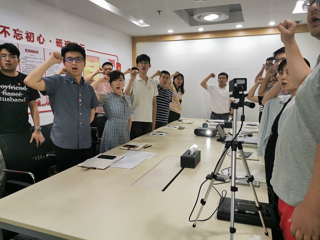 2020年6月24日,在“七一”来临之际,中共广东省循环经济和资源综合利用协会支部委员会组织全体党员和预备党员、入党积极分子在协会会议室开展庆祝中国共产党成立99周年——协会党支部组织开展重温入党誓词和“扶贫战疫”主题党日活动。活动由支部书记刘建华同志主持。