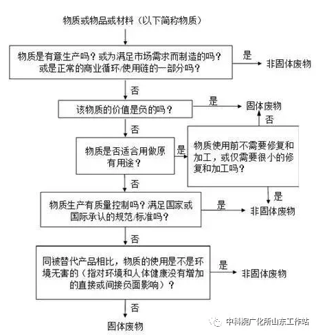 固体废物是指在生产、生活和其他活动中产生的丧失原有利用价值或者虽未丧失利用价值但被抛弃或者放弃的固态、半固态和置于容器中的气态的物品、物质以及法律、行政法规规定纳入固体废物管理的物品、物质。固体废物与非固体废物的鉴别如下图所示。