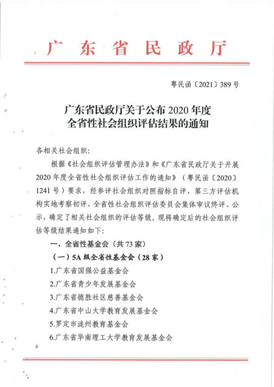 根据《社会组织评估管理办法》和《广东省民政厅关于开展2020年度全省性社会组织评估工作的通知》(粤民函〔2020〕1241号)要求,经参评社会组织对照指标自评、第三方评估机构实地考察初评、全省性社会组织评估委员会审议终评,最终确定了有关社会组织的评估等级。