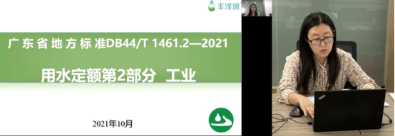广州丰泽源水利科技有限公司房春艳高级工程师解读了《广东省用水定额》编制背景和意义、适用范围、用水定额相关术语、企业用水分类、用水定额核算等基本情况,深入讲解《广东省用水定额》修订情况和工业部分主要产品用水定额,并从计划用水管理、企业节水诊断、企业节水自评估等角度提出了工业节水建议。