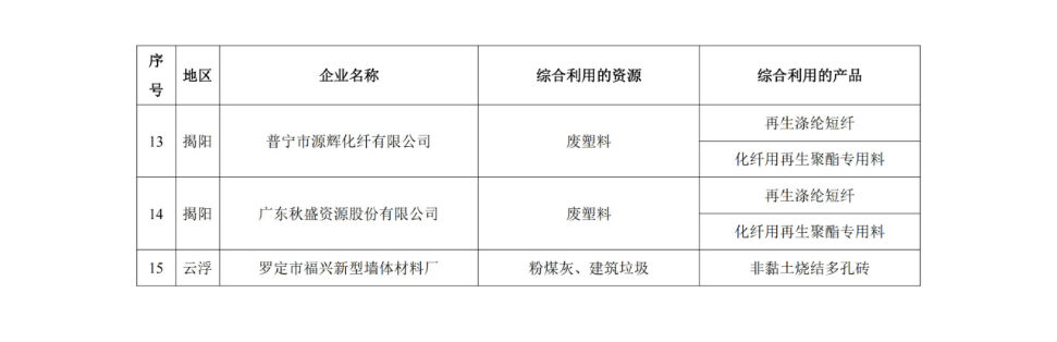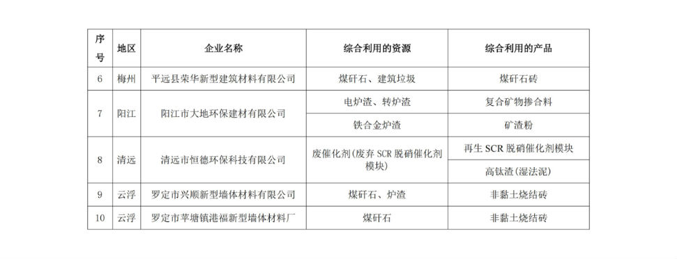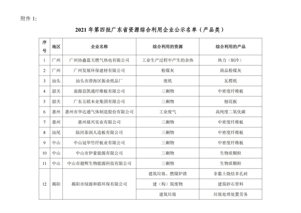 附件:1、2021年第四批广东省资源综合利用企业公示名单(产品类)
