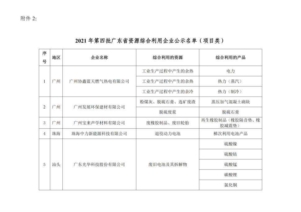 2、2021年第四批广东省资源综合利用企业公示名单(项目类)