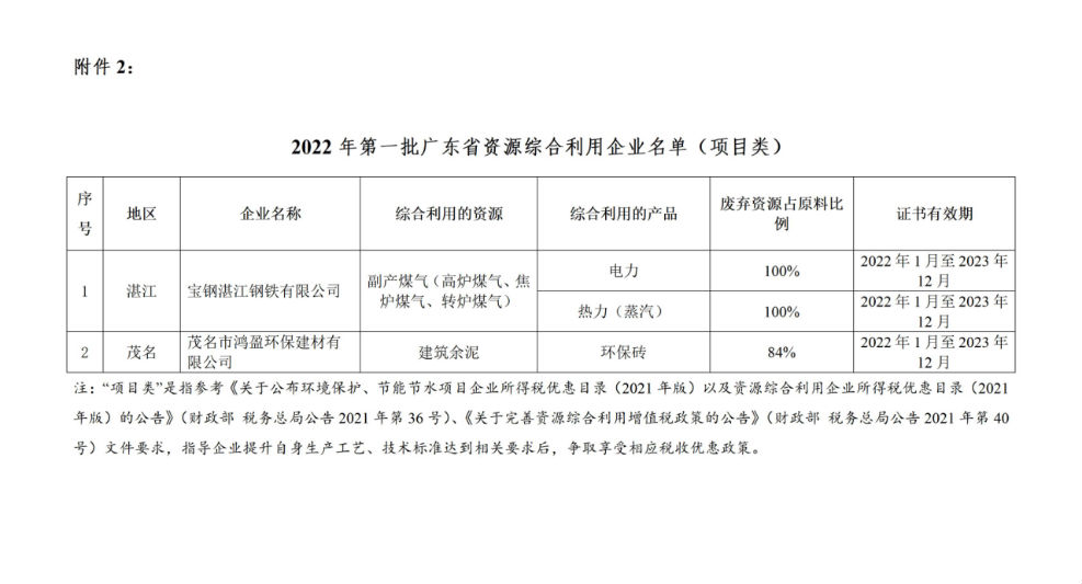 2、2022年第一批广东省资源综合利用企业公示名单(项目类)