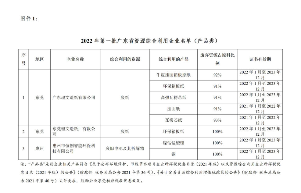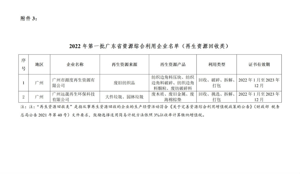 关于公布2022年第一批广东省资源综合利用企业名单的通知