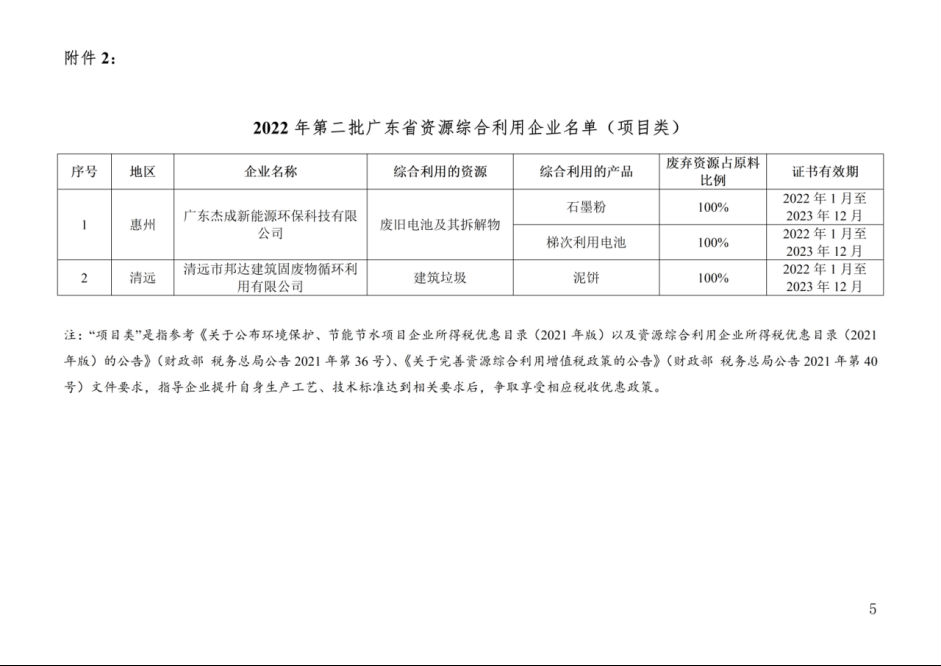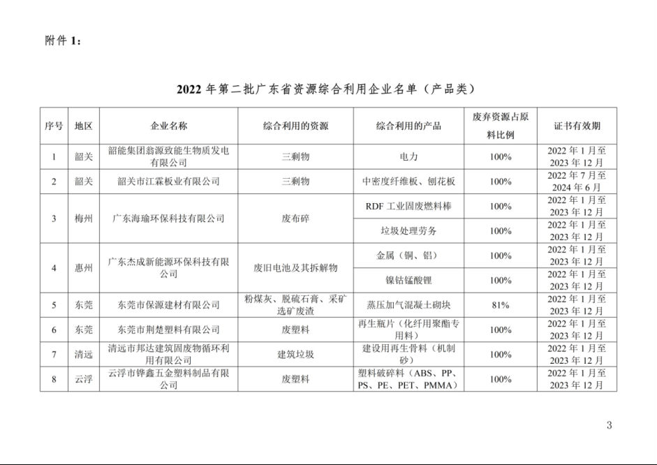 关于公布2022年第二批广东省资源综合利用企业名单的通知