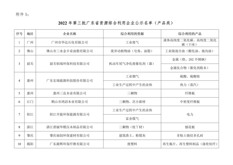 1、2022年第三批广东省资源综合利用企业公示名单(产品类)