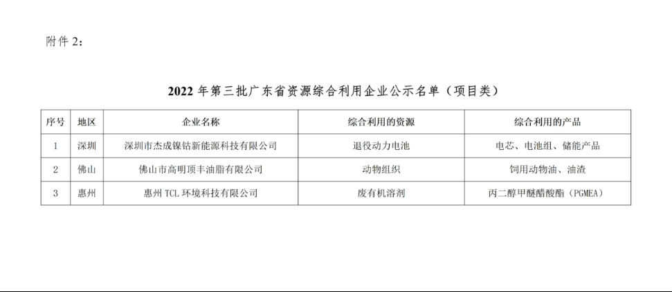 2、2022年第三批广东省资源综合利用企业公示名单(项目类)
