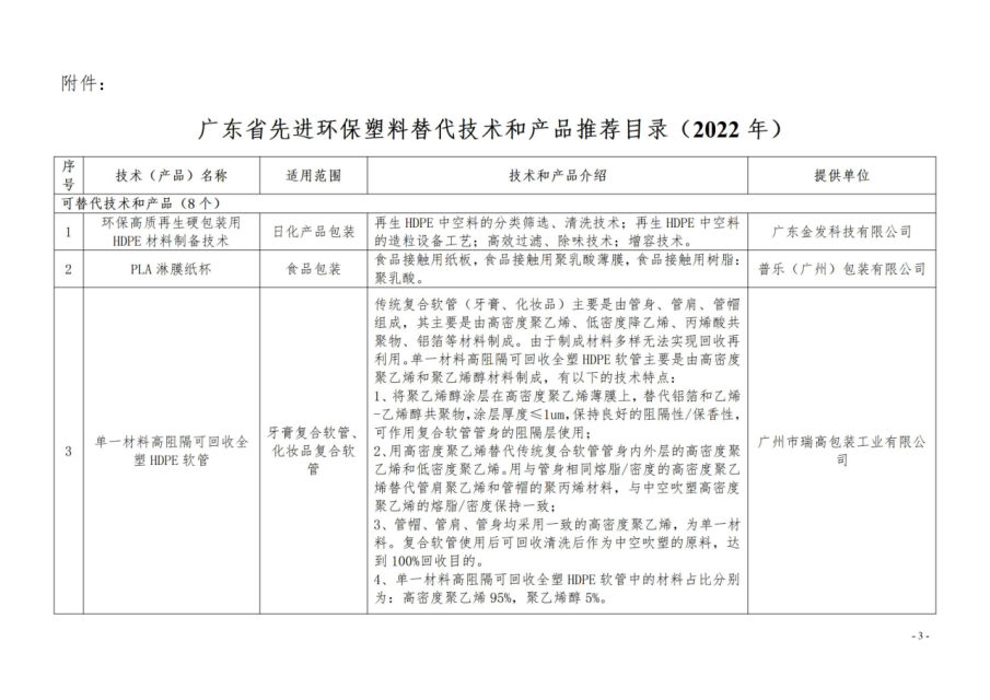 附件:广东省先进环保塑料替代技术和产品推荐目录(2022年)
