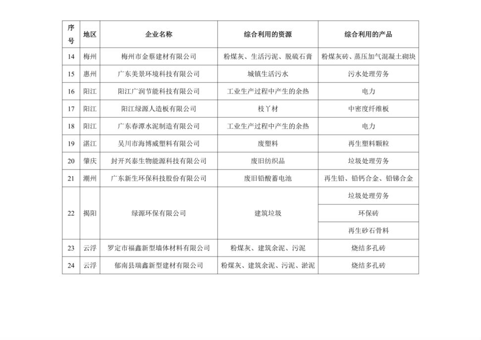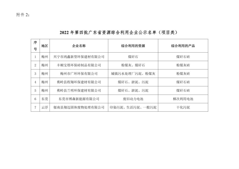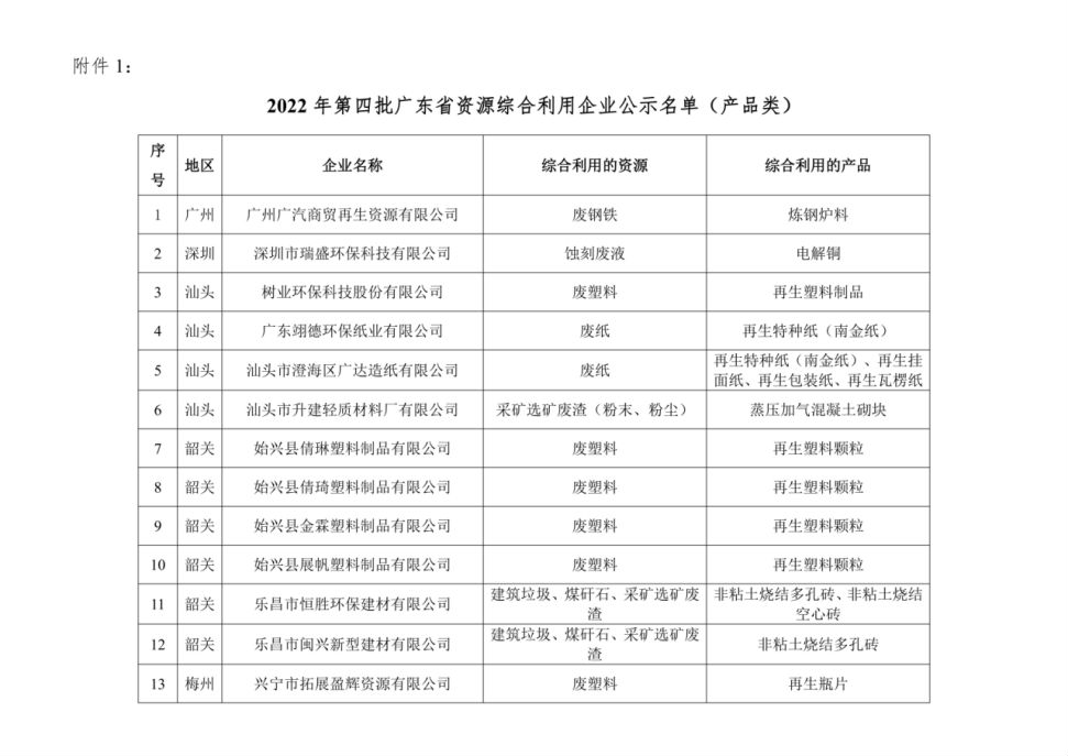 附件:1、2022年第四批广东省资源综合利用企业公示名单(产品类)