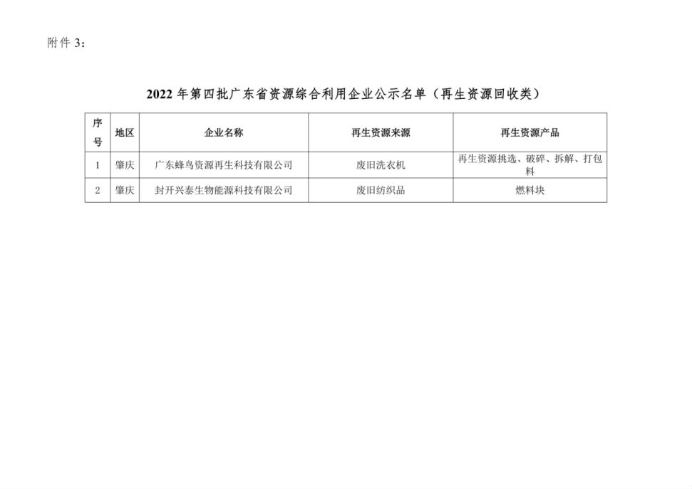 3、2022年第四批广东省资源综合利用企业公示名单(再生资源回收类)