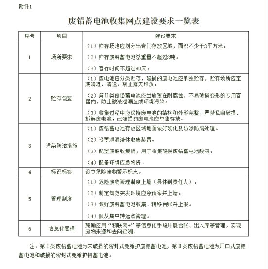 附件:1.废铅蓄电池收集网点建设要求一览表