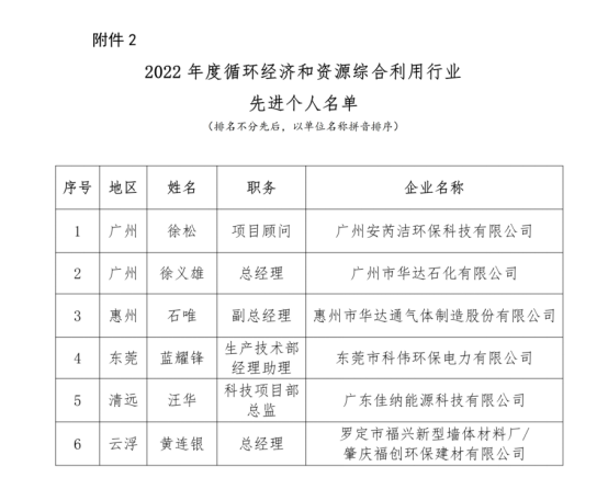 关于公布2022年度循环经济和资源综合利用行业 领军人物和先进个人名单的通知