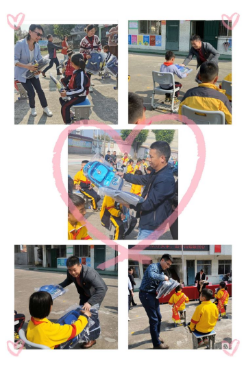 白沙村委书记李雪峰、协会党支部书记刘建华、协会总工程师傅智健、中心主管郭敏及可信新能源副总经理刘敏为每一位学生派发爱心书包,并叮嘱他们把握来之不易的学习机会,好好学习,将来用优异的成绩回报社会。