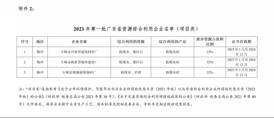 2、2023年第一批广东省资源综合利用企业名单(项目类)