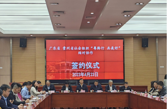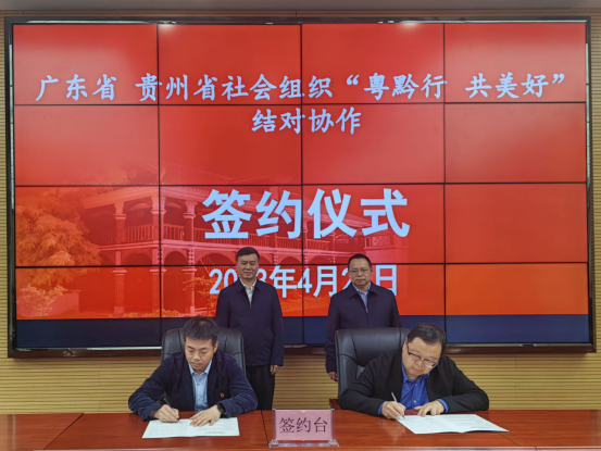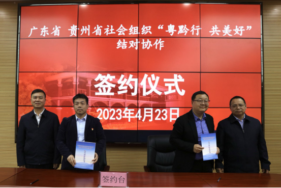 4月23日,广东省·贵州省社会组织“粤黔行 共美好”结对协作签约仪式在遵义市举行,广东省民政厅党组成员、副厅长,广东省社会组织管理局党组书记、局长庄侃,贵州省民政厅党组成员、副厅长邓湘贵出席签约仪式并讲话。