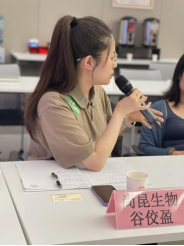 深圳市尚昆生物技术有限公司总裁秘书谷佼盈作“矿石生物酶(OBE)生物降解塑料母粒介绍”主题分享