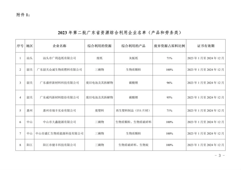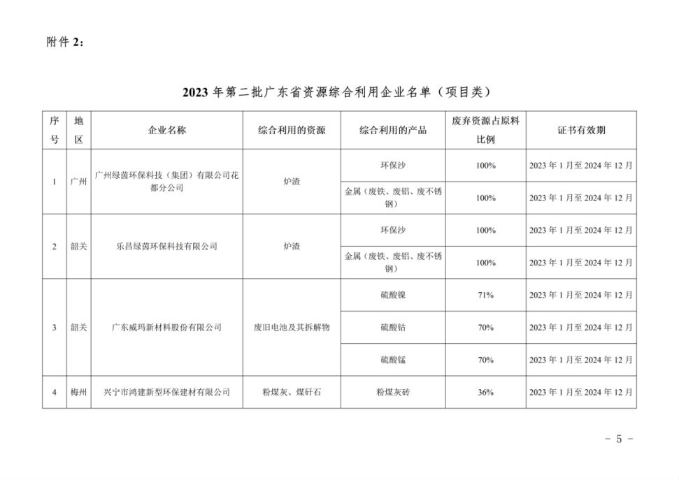 关于公布2023年第二批广东省资源综合利用企业名单的通知