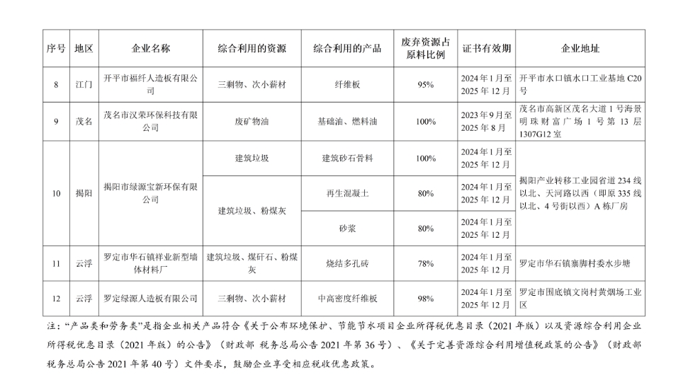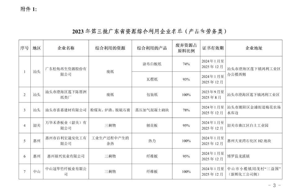 1、2023年第三批广东省资源综合利用企业名单(产品类和劳务类)